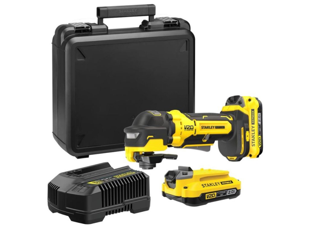 - SFMCE510D2K: Oscilačná brúska, 2×2.0 Ah Li-Ion batéria V20, rýchlonabíjačka, kufrík.