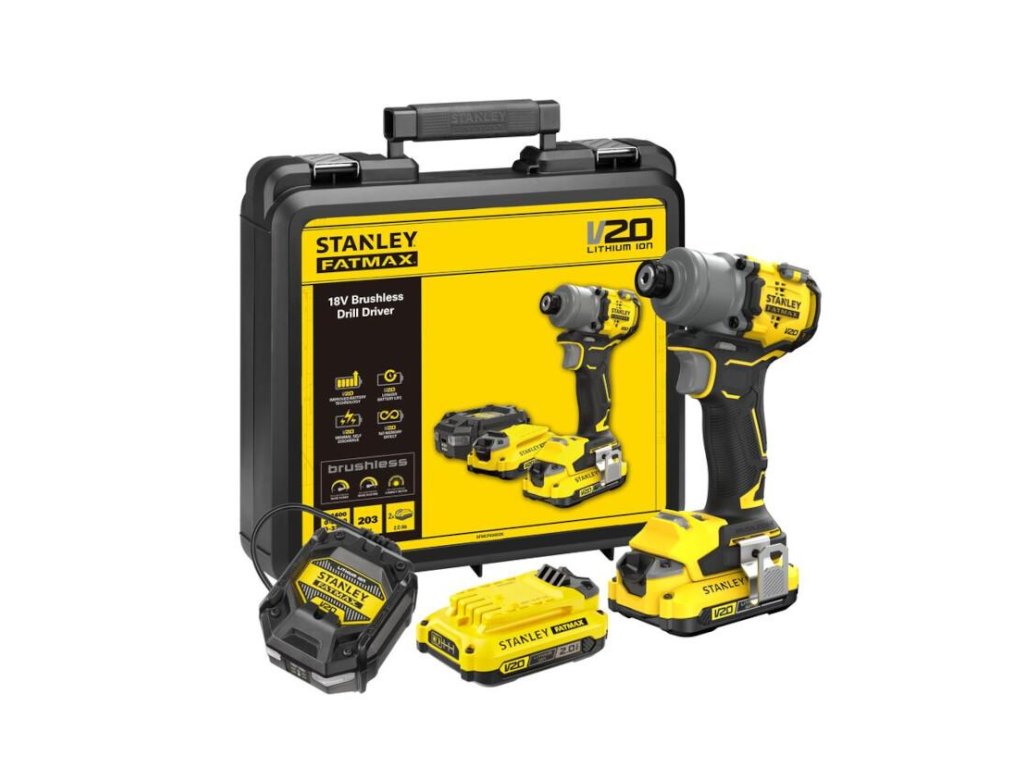- SFMCF830D2K: Rázový uťahovák, 2 x 2,0 Ah Li-Ion batéria, nabíjačka 1,25 A, kufor.