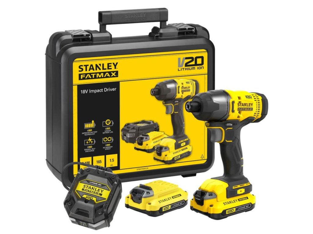 - SFMCF800C2K: Rázový uťahovák, 2×1,5 Ah Li-ion batéria V20, nabíjačka, kufrík.