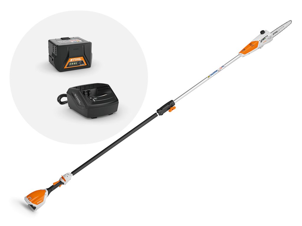 Obzvlášť ľahká a tichá vyvetvovacia akumulátorová píla s vysokým výkonom. Skvelá na údržbu záhrady a ovocných stromov. Pilová reťaz 1/4“ PM3, pevný hriadeľ. Celková dĺžka 280 cm. Hmotnosť 3,6 kg. Výhodný set. Cena uvedená s nabíjačkou AL 101 a akumulátorom AK 20.Dodatočné parametre