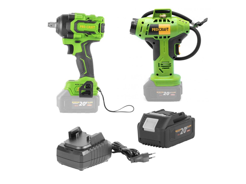 Sada aku rázový uťahovák Procraft PWA18 a aku kompresor Procraft LK20 s batériou a nabíjačkou | SPWA18bb-LK20-20/4-20/1