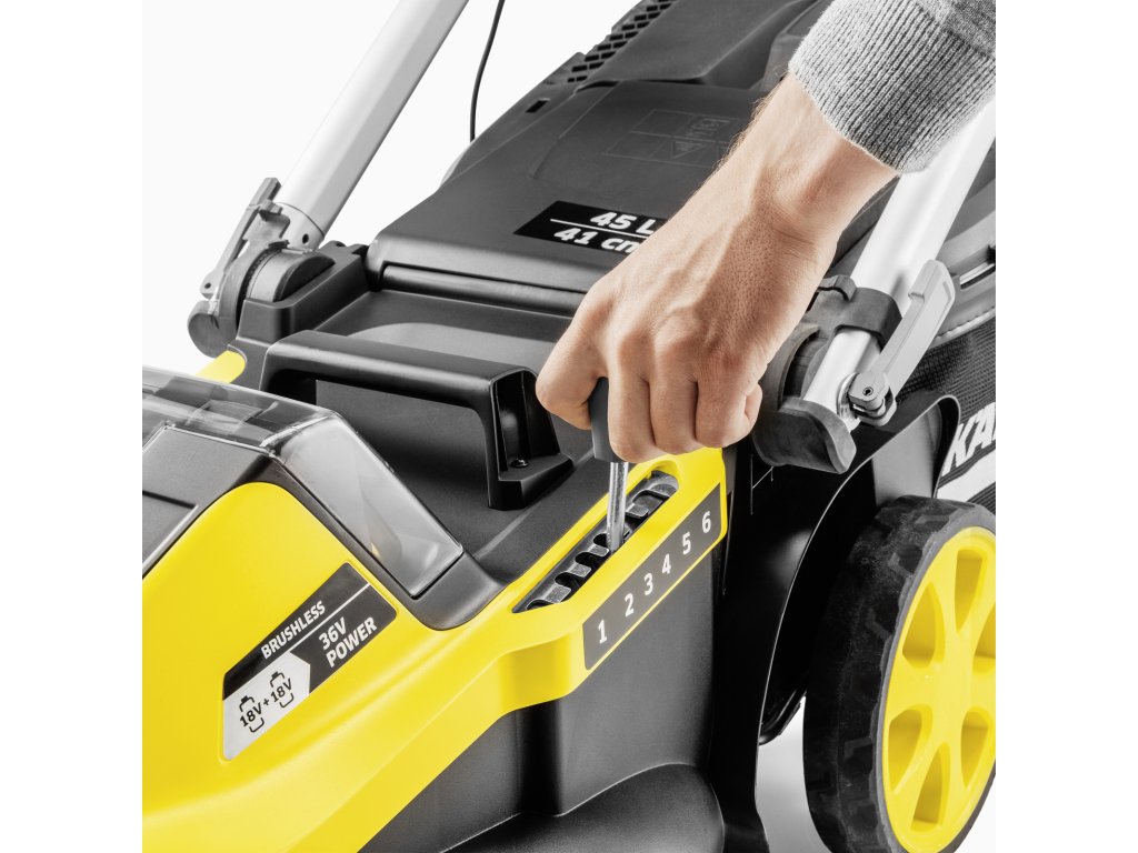 S dvoma 18-voltovými batériami a výkonným bezuhlíkovým 36-voltovým motorom je kosačka LMO 5-18 Dual Battery Set rovnako doma na veľkých trávnikoch s rozlohou až 550 metrov štvorcových. Ľahká a obratná akumulátorová kosačka sa dá bez námahy tlačiť cez nerovný terén a okolo prekážok. Pracovná šírka je 41 centimetrov a výšku kosenia je možné centrálne nastaviť v šiestich úrovniach od 25 do 70 centimetrov. Vďaka inteligentnému riadeniu motora funkcie iPower sa rýchlosť počas kosenia automaticky prispôsobuje podmienkam trávy. Keď je potrebné kosiť hrany alebo okraje, hrebene trávnika narovnajú steblá trávy pre lepšiu rýchlosť zachytenia. So systémom kosenia 2 v 1 sa pokosená tráva rovnomerne rozloží po trávniku ako prírodné hnojivo počas mulčovania alebo sa zhromažďuje v 45-litrovej nádobe na zber trávy – pre dlhšie nepretržité kosenie. Vodiaca rukoväť je teleskopická pre pohodlnú a ergonomickú pracovnú polohu. Skladací rám zaberá pri skladovaní veľmi málo miesta. K dispozícii je veľká, pevná rukoväť na prenášanie po schodoch a po schodoch. Batérie a rýchlonabíjačka sú súčasťou balenia.Dodatočné parametre