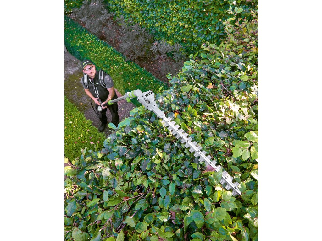 - V plne roztiahnutom stave môžete strihať vrchol živého plota vo výške až 4 m
