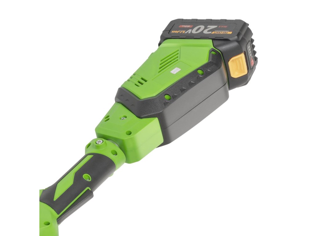Akumulátory 20 V, 4 Ah: Krovinorez je napájaný 2 akumulátormi s kapacitou 20 V a 4 Ah, čo zaisťuje dostatočnú výdrž na dlhšiu prácu.