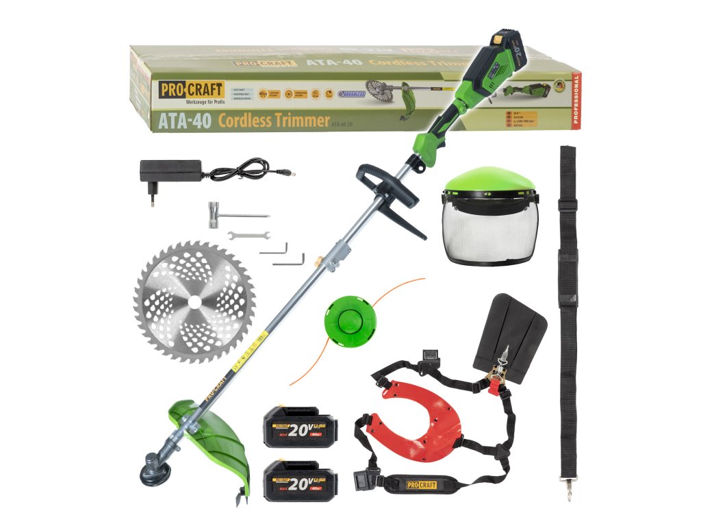 Aku krovinorez Procraft ATA-40 + dvojramenný popruh a ochranný štít | ATA-40/20SH/CH/FACE-GUARD + 9 mm nôž odlamovací, plastový