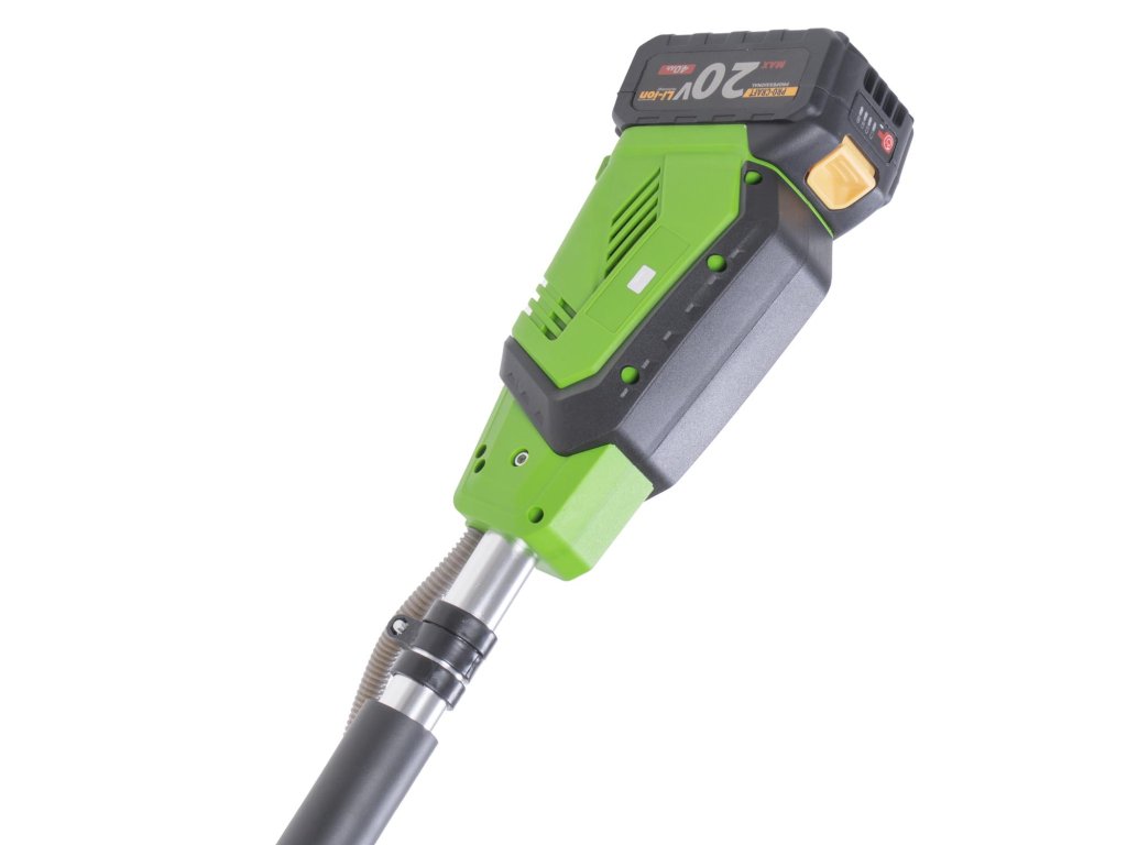 Akumulátory 20 V, 4 Ah: Krovinorez je napájaný 2 akumulátormi s kapacitou 20 V a 4 Ah, čo zaisťuje dostatočnú výdrž na dlhšiu prácu.
