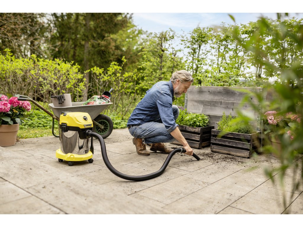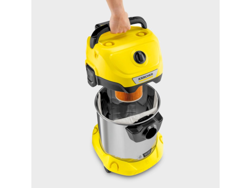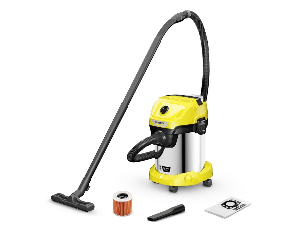 Žiadny kábel. Bez obmedzenia: akumulátorový vysávač WD 3-18 S na mokré a suché vysávanie beží na 18 V batériovej platforme Kärcher Battery Power a ponúka maximálnu flexibilitu, kompaktnú konštrukciu a voľnosť pohybu. Zariadenie dokonale kombinuje 2 metre dlhú saciu hadicu a podlahovú hubicu a dokáže okamžite odstrániť mokré, jemné alebo hrubé nečistoty. Zariadenie je tiež vybavené robustnou a nárazuvzdornou 17-litrovou nádobou z nehrdzavejúcej ocele, jednodielnym patrónovým filtrom, ako aj fleecovým filtračným vreckom. Uloženie sacej hadice šetrí miesto; Jednoducho ho bezpečne zaveste na hlavu zariadenia. Medzi ďalšie funkcie patrí praktická funkcia fúkania pre oblasti, kde nie je možné vysávanie, odkladacia polica na náradie a drobné predmety, otočný spínač na jednoduché zapínanie a vypínanie zariadenia, ergonomicky tvarovaná rukoväť na prenášanie, ako aj uzamykací systém "Pull & Push", ktorý umožňuje jednoduché otváranie a zatváranie nádoby. Parkovacia poloha na nárazníku umožňuje rýchle a pohodlné uloženie rúrok a podlahovej hubice aj pri krátkej prestávke v práci.Dodatočné parametre