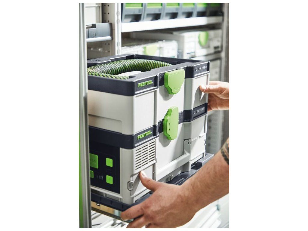 | Jedinečné vlastnosti výrobku text: | Vysávač na zavesenie: Kompaktný formát Systainer, nízka hmotnosť, nezávislý od zásuvky. Preto je to váš dokonalý spoločník pre servisné práce a mikropráce a pri občasnom spontánnom použití.|Presvedčí sacím výkonom: Porovnateľná energia ako u vášho vysávača na kábel vďaka 36 V turbíne s 2× 18 V akumulátormi.|Možnosť spojenia a kombinovania. Navyše ideálne prispôsobený pre vaše akumulátorové náradie Festool. Mimoriadne pohodlie zabezpečuje rýchle automatické spúšťanie Bluetooth® cez akumulátor alebo diaľkové ovládanie. |