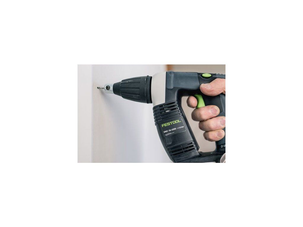 | Jedinečné vlastnosti výrobku text: | Rýchle sériové skrutkovanie umožní zásobníkový nadstavec na pásové skrutky. Vďaka konštantným hĺbkam skrutkovania a presnému umiestnenou skrutky hneď na začiatku vylúčite časovo náročné dorábky.|Nízka hmotnosť zaručuje DWC 18 optimálne predpoklady na vytrvalú prácu bez námahy – aj nad hlavou. Ľahké akumulátory Compact sa v kombinácii s motorom EC-TEC a inovačnou funkciou Stop-and-Go postarajú o maximálnu výdrž na jedno nabitie akumulátora.|Všetky komponenty sú zamerané na maximálne dlhú životnosť: motor EC-TEC je bezuhlíkový, a teda bezúdržbový. Elektronické vypínanie sa okrem toho postará o dlhú životnosť. A to ešte nie je všetko – samozrejme, že nielen samotný skrutkovač na montáž suchých DWC, ale aj akumulátory a nabíjačky sú kompletne zaistené vďaka Festool Service. |