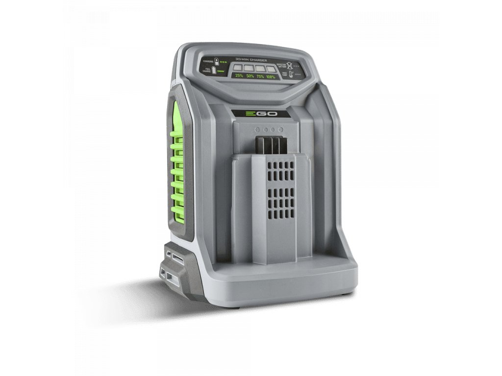 Rýchla nabíjačka CH5500E s nabíjacím výkonom 550 W má v sebe zabudovaný výkonný chladiaci systém, vďaka ktorému nabíja batérie najvyšším možným prúdom bez toho, aby sa prehriali. Súčasne monitoruje teplotu každého článku a v reálnom čase modifikuje nabíjací prúd podľa teploty batérie. Vďaka tomu sa môžu začať nabíjať skôr a dobiť rýchlejšie a zároveň sa tým predlžuje životnosť batérie. LED Indikátor zobrazuje úroveň nabitia batérie v štyroch stupňoch (každý dielik označuje 25 % kapacity batérie) a stav nabíjania. Táto nabíjačka je kompatibilná so všetkými batériami EGO POWER+.