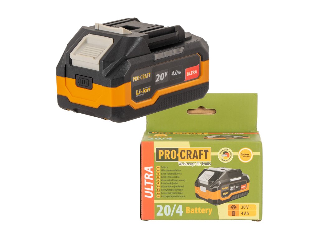 Batéria Procraft 20/4 Ultra poskytuje dlhú výdrž batérie, spoľahlivý výkon a bezpečnostnú ochranu, vďaka čomu je ideálnou voľbou pre každého profesionála a profesionála v oblasti domácich majstrov.