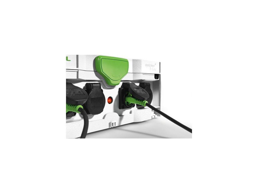 - Systainer s integrovanými zásuvkami a káblom z dĺžkou 10 m na použitie ako elektrický rozvádzač na stavbe, plne integrovateľný do systému Systainer