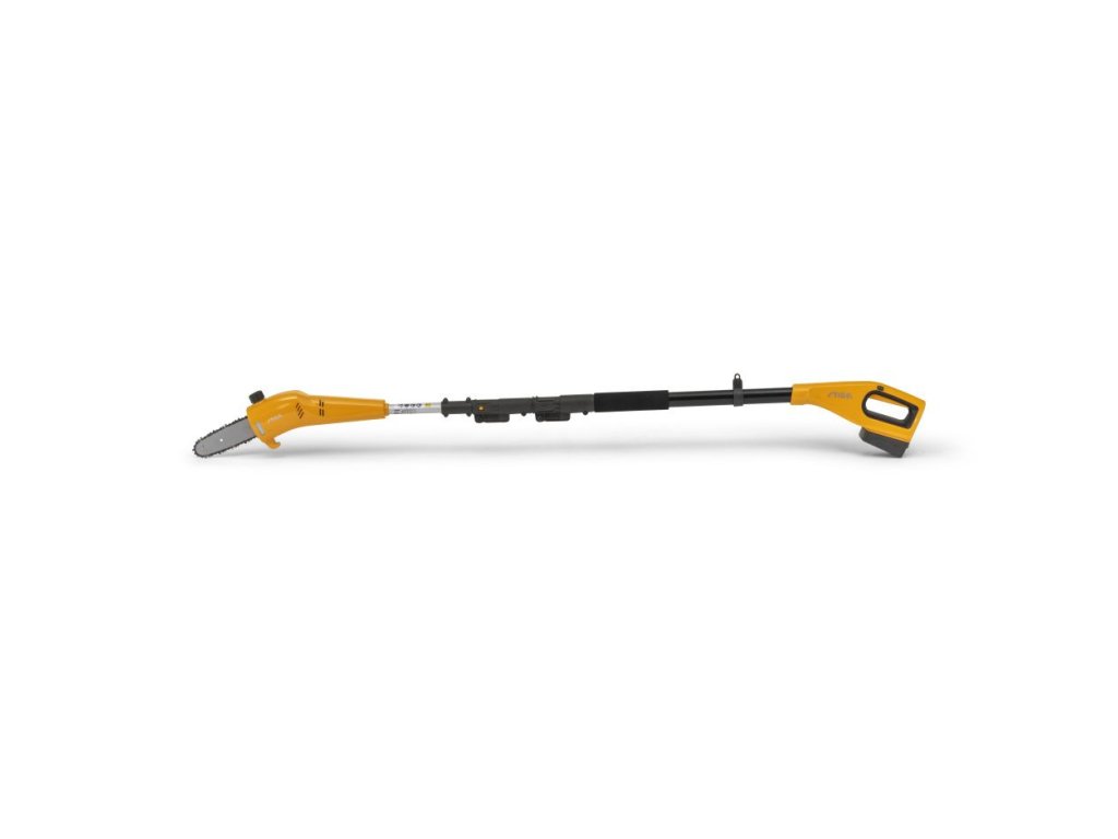 väčšinu prác nad hlavou. Vďaka 18 mm vzdialenosti zubov a 112° otočnej hlave si hravo poradí aj so stredne silnými vetvami. Vysoko kvalitná lišta a reťaz sa pri prerezávaní dostanú aj do tých najužších miest -