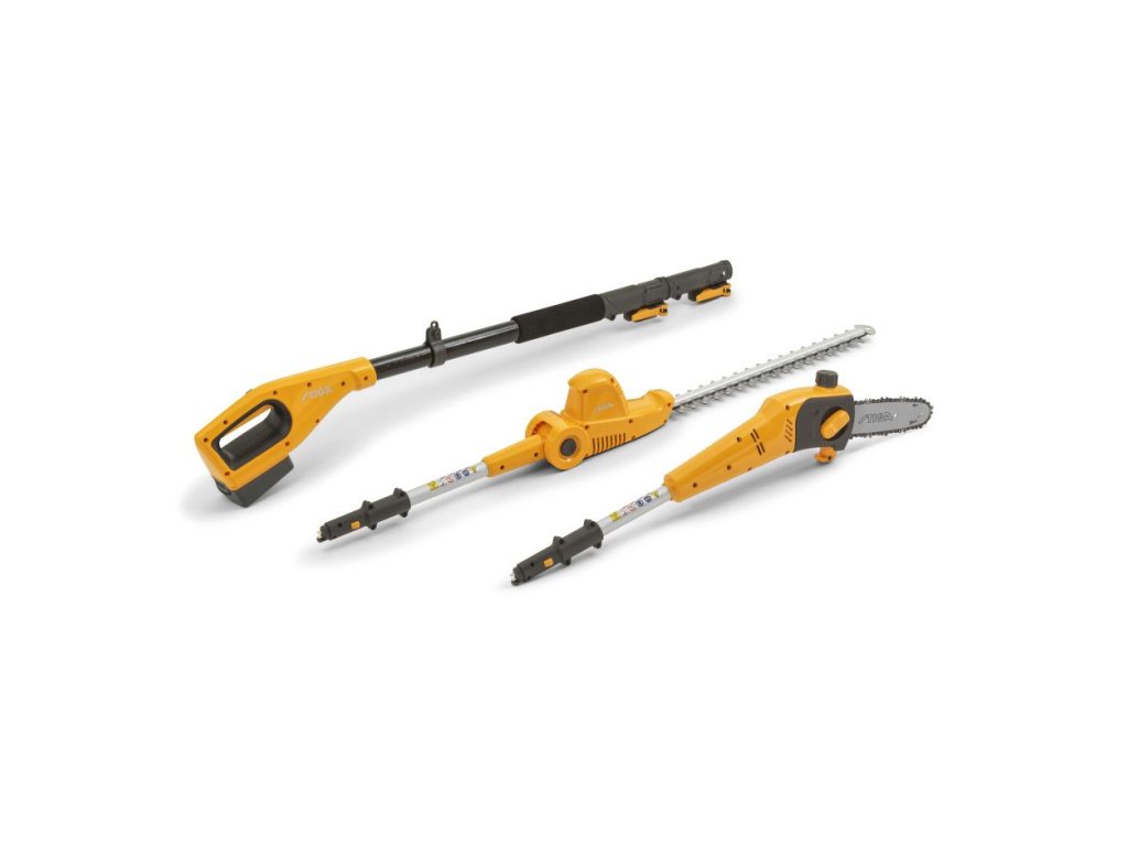 nástroja do postroja jednoducho pripojte nožnice na živý plot alebo prerezávaciu pílu na koniec 55cm teleskopickej tyče, ktorú vytiahnete až na dĺžku 2,75 m. Na strihanie živých plotov je 45 cm lišta dostatočne dlhá na to, aby zvládla