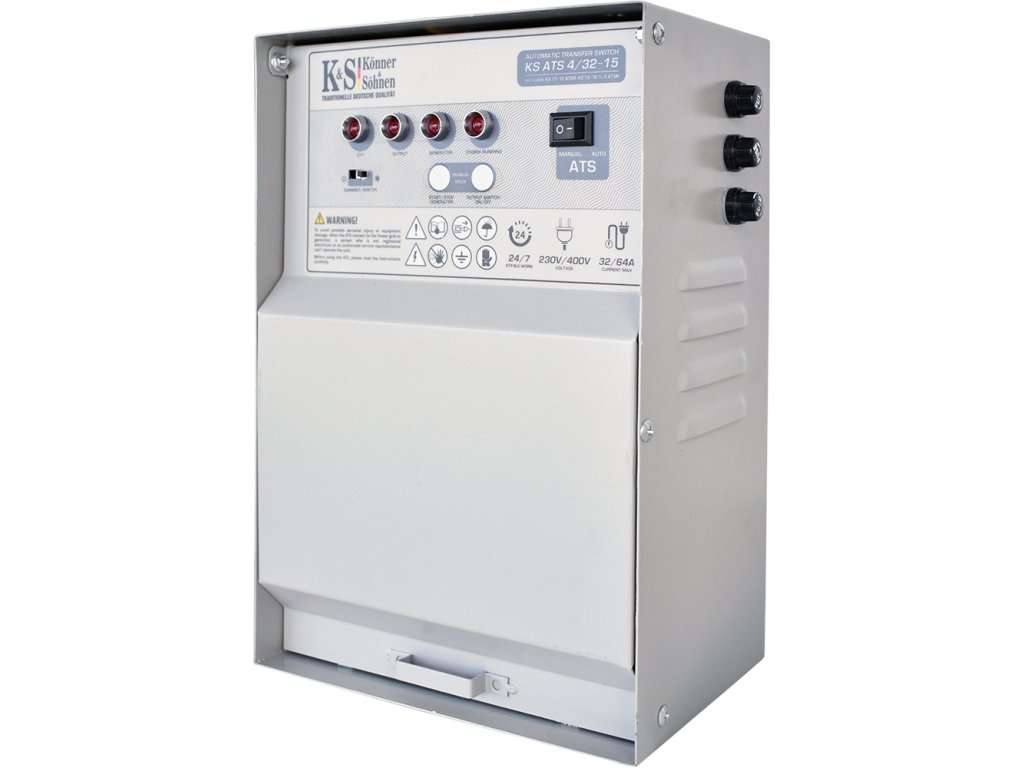 Jednotka ATS (Automatic Transfer Switch) automaticky spustí elektrocentrálu a přenese na ni zátěž, když je odpojen hlavní napájecí zdroj, a automaticky zastaví elektrocentrálu, jakmile je obnoven centrální napájecí zdroj. ATS přepínač není součástí balení, je nutné dokoupit zvlášť!