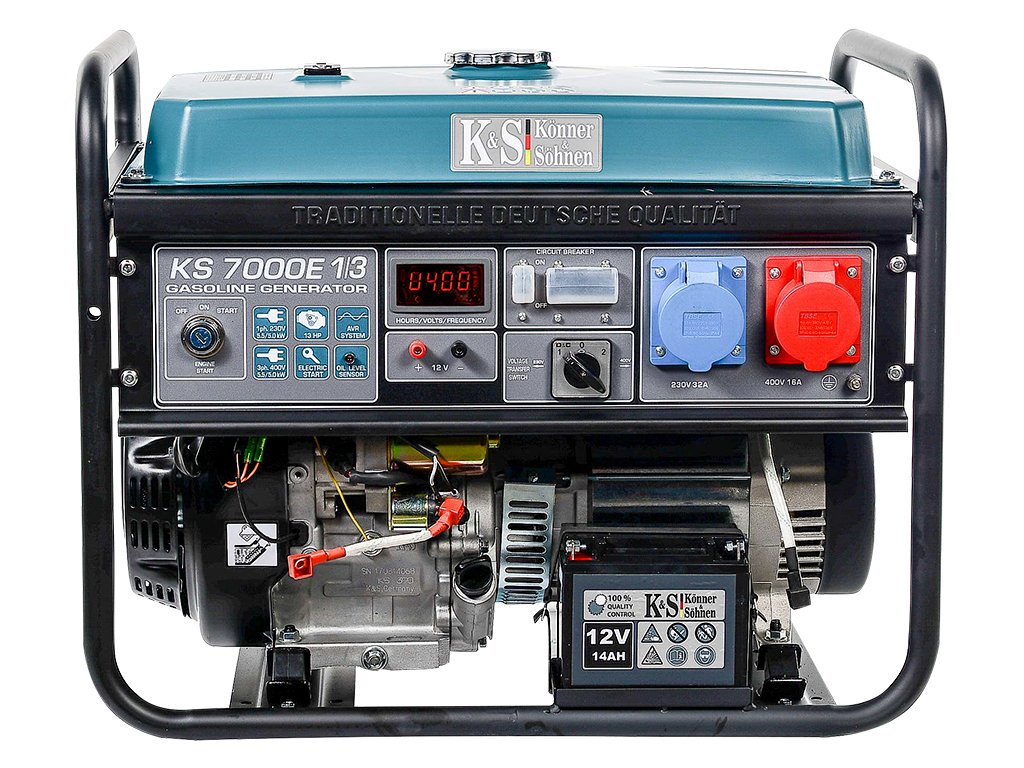 Benzínová elektrocentrála KS 7000E 1/3 je vybavena unikátním inovativním systémem fázového spínání VTS (přepínač napětí), který umožňuje použít elektrocentrály jak ve třífázovém režimu (400 V), tak v jednofázovém režimu (230 V) bez ztráty energie! Mimo jiné je vybavena moderním LED displejem, který zobrazuje počet odpracovaných hodin, frekvenci a výstupní napětí. Elektrocentrála dosahuje max. výkonu 5,5 kW a má objem palivové nádrže 25 l.