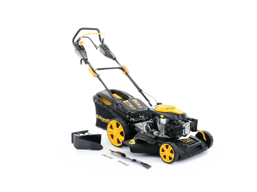multifunkčna trávna kosačka 4 v 1 s benzínovým motorom a variabilným pojazdom Riwall PRO RPM 5140 V + Olej pre 4 - taktné motory + Sada na výmenu oleja + Náhradný nôž
