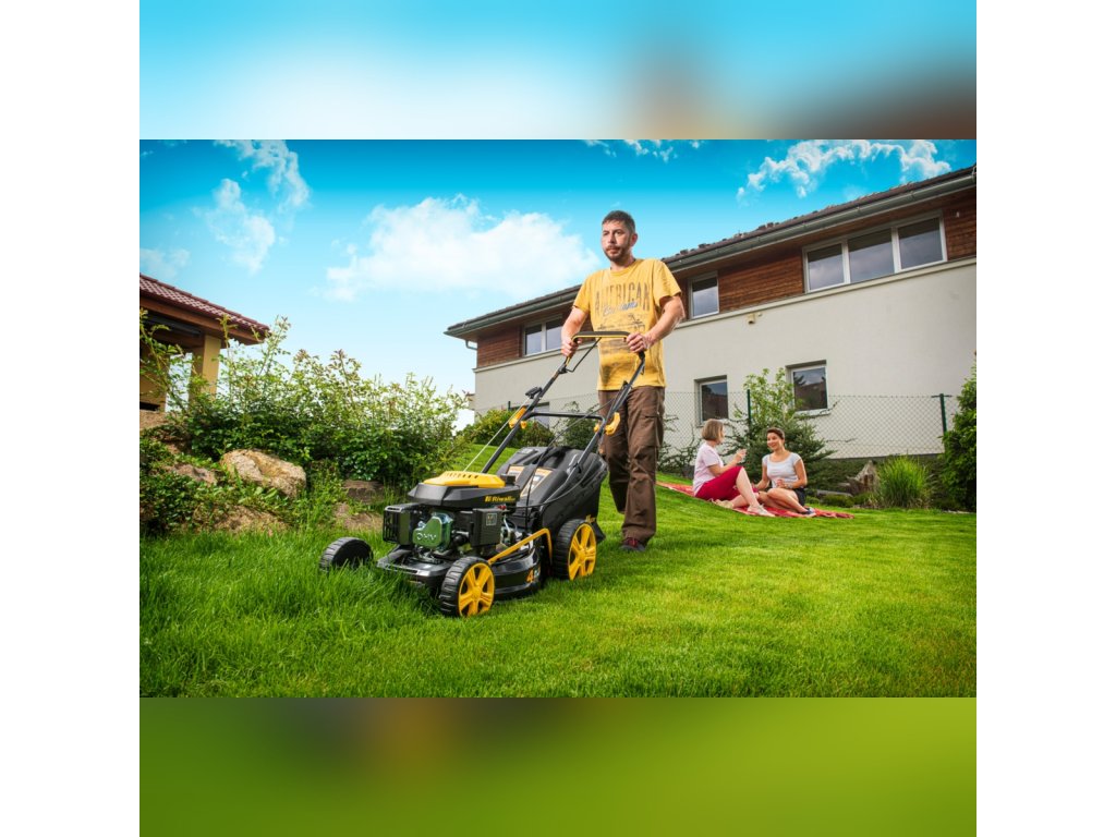 multifunkční travní sekačka 4v1 s pojezdem Riwall PRO RPM 4735 + Olej pre 4 - taktné motory + Sada na výmenu oleja + Náhradný nôž