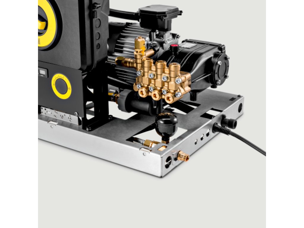 Náš stacionárny studenovodný vysokotlakový čistič je výkonná voľba s prietokom 1 700 l/h a tlakom 120 barov, vďaka čomu je ideálny na nepretržité používanie v náročných pracovných podmienkach, napríklad v potravinárskom priemysle. Na prívode vody je možná teplota až 85 °C. Kľukové čerpadlo s mosadznou hlavou valcov, ako aj rám a puzdro z nehrdzavejúcej ocele zabezpečujú robustnú konštrukciu. Vysokotlakový čistič má zásobník na vodu s ochranou proti chodu nasucho a ochranou proti vodnému kameňu, pre ochranu proti vodnému kameňu sa zobrazuje prázdna hladina. Čistiaci prostriedok je možné nasávať a dávkovať aj cez ventil a je tu aj indikátor prázdnej nádoby. 4-pólový, nízkootáčkový elektromotor zaručuje dlhú životnosť. Inštalácia, prevádzka a údržba sú navrhnuté s ohľadom na užívateľskú prívetivosť. Pre zaistenie vysokej úrovne prevádzkovej bezpečnosti je stroj vybavený elektronickým monitorovaním. Produkt je doplnený o rozsiahlu škálu príslušenstva, ktoré je možné zvoliť na každom mieste použitia: manometer, počítadlo času, prívod pre druhý čistiaci prostriedok, automatické uvoľnenie tlaku a diaľkové ovládače.Dodatočné parametre