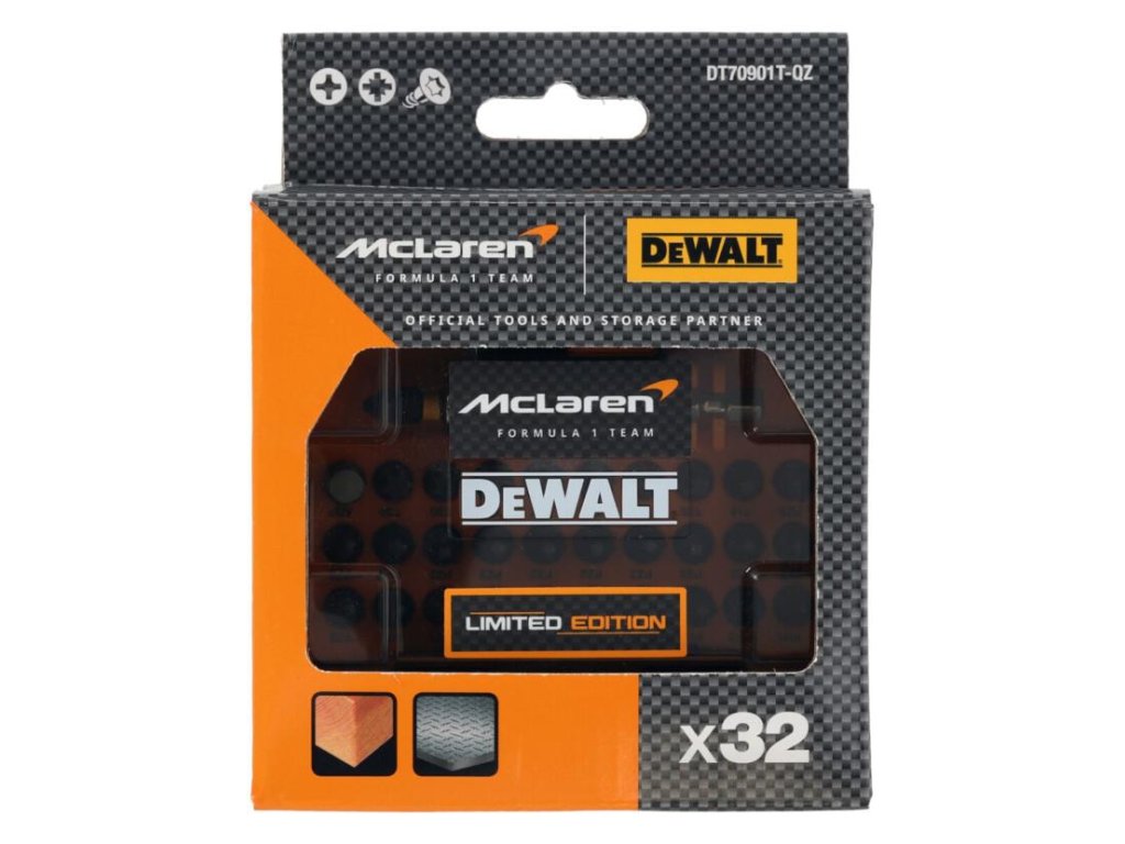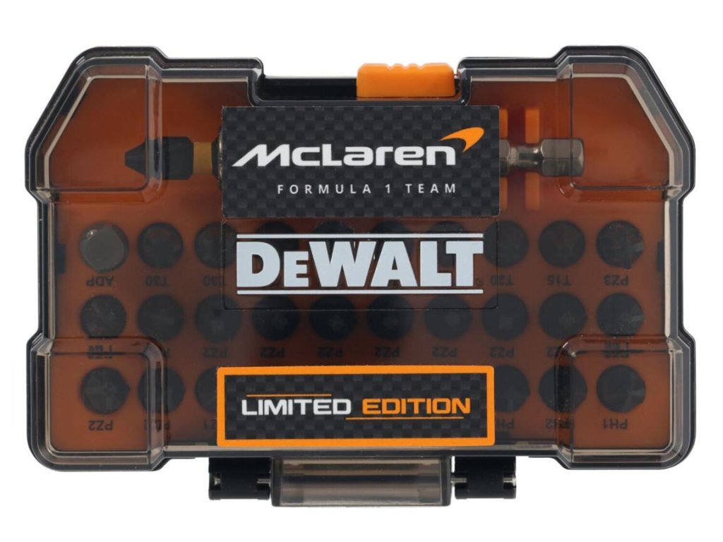 - 32-dielna skrutkovacia súprava FLEXTORQ DEWALT McLaren so štandardným držiakom nástrojov.