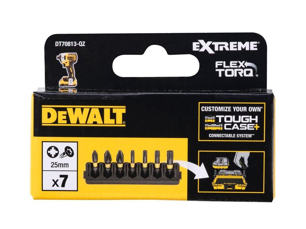 Sada Tough Case - držiak 7ks bitov 25mm + (PZ1, PZ2, T15, T20, T25, T30) FLEXTORQ DEWALT DT70813