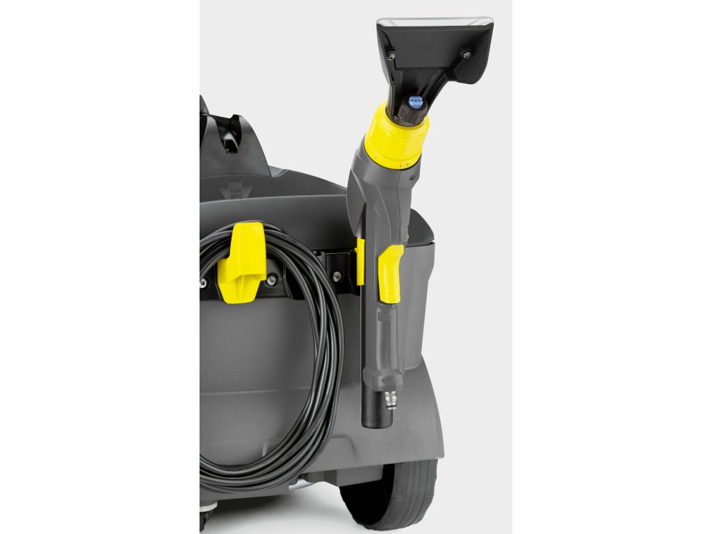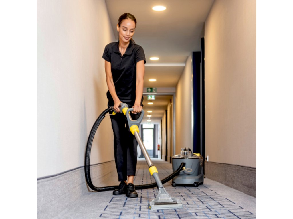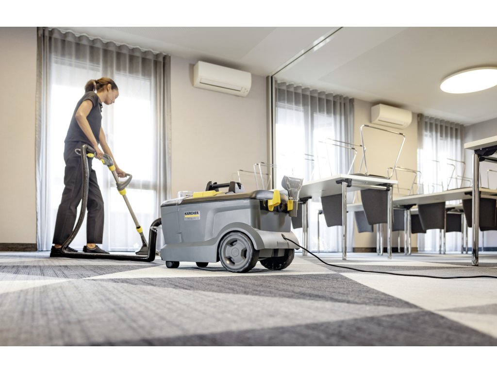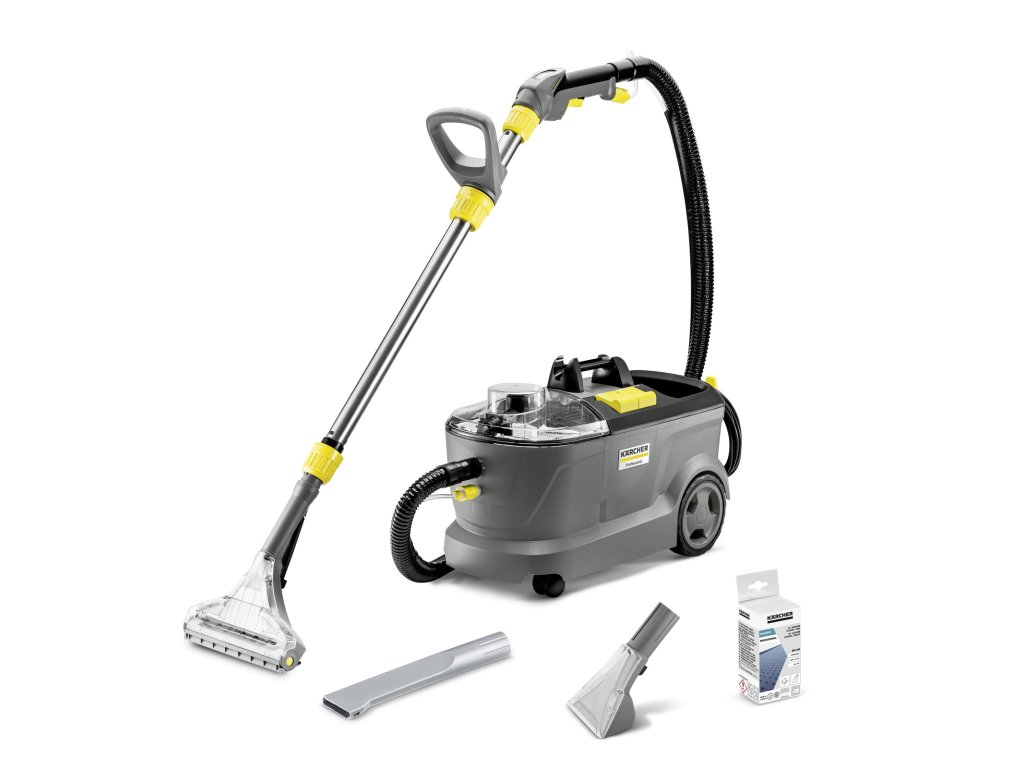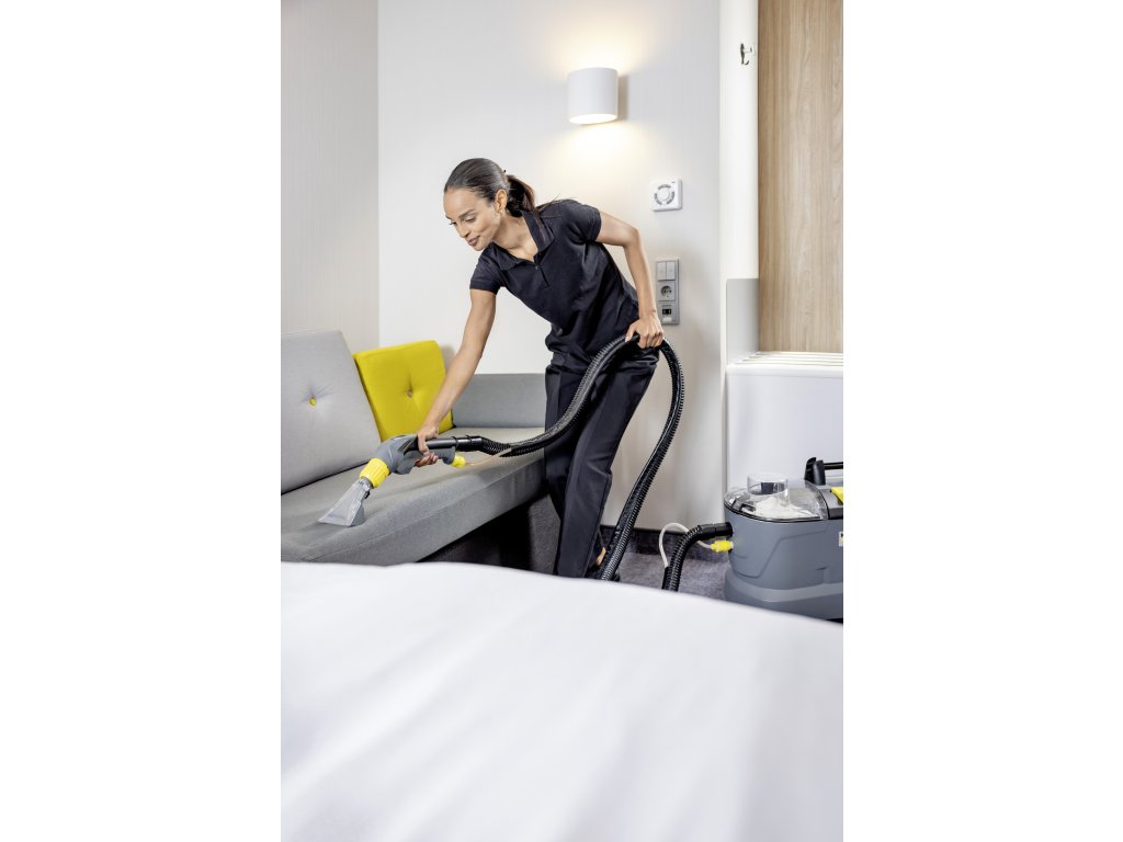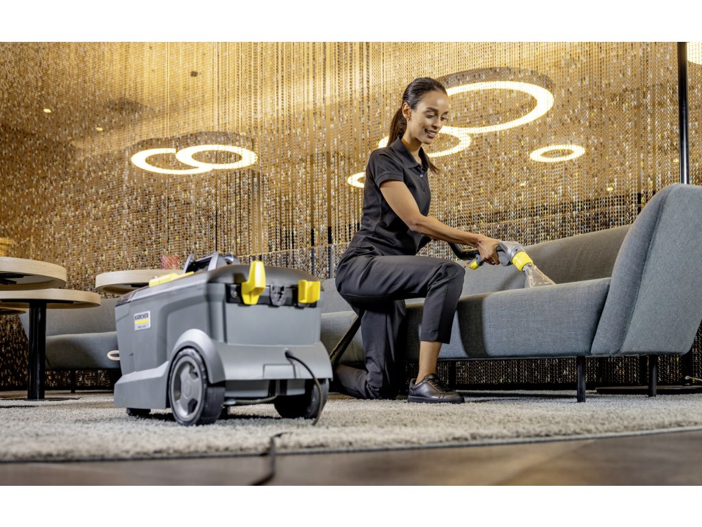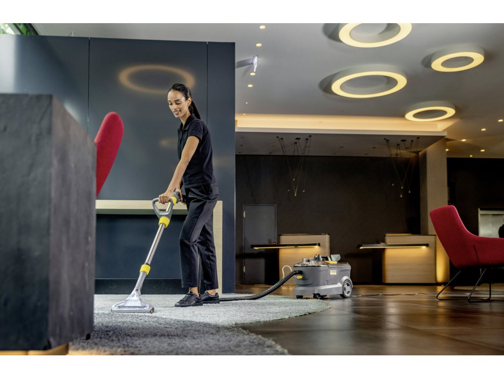 Profesionálny tepovač - extraktor Puzzi 10/1 Edition od Kärcher poskytuje vynikajúci sací výkon, hygienicky čisté výsledky čistenia a zaisťuje rýchle opätovné použitie textilných povrchov. Stroj pracuje na princípe nástreku vody a čistiaceho prostriedku do textílií pod tlakom, a na ich následnom odsatí, spolu s uvoľnenými nečistotami. Vďaka tomu je ideálny na čistenie čalúnenia, kobercov a iných textilných povrchov. Robustný, kompaktný dizajn Puzzi 10/1 Edition zaisťuje dlhú životnosť a tým aj vysokú hospodárnosť – ideálne pre dodávateľov stavebných služieb, hotelový a pohostinský sektor alebo na čistenie interiérov vozidiel. Veko stroja, hubica na čalúnenie a podlahová hubica sú priehľadné pre lepšie sledovanie stupňa znečistenia pri čistení. Pohodlie pre užívateľa zvyšujú aj veľké tlačidlá, ktoré možno ovládať rukou alebo nohou. Príslušenstvo zahrnuté v rozsahu dodávky je obzvlášť štedré: 240 mm hubica na koberce, hubica na čalúnenie, štrbinová hubica a 48 ks tabliet RM 760.
