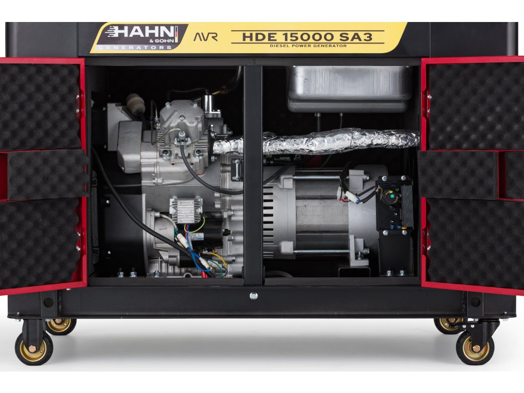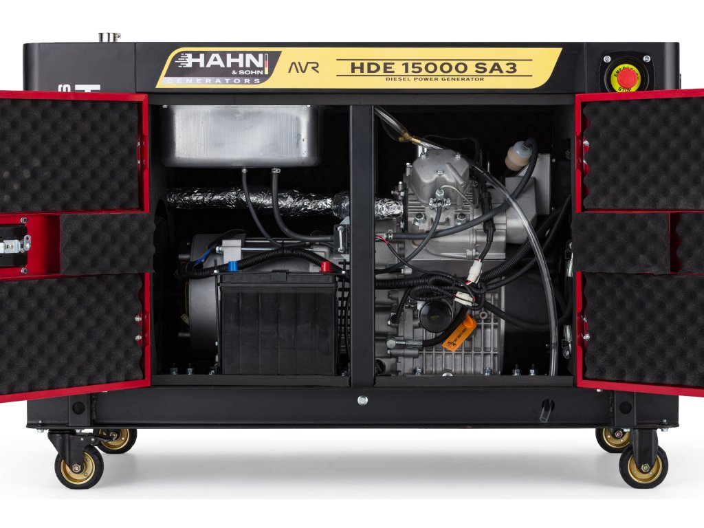 Dieselová elektrocentrála Hahn & Sohn HDE 15000SA3 je robustní a spolehlivý zdroj elektrické energie v odhlučněném krytu, navržený pro profesionální použití tam, kde je kladen důraz na nízkou hlučnost, stabilní výkon a dlouhou životnost.