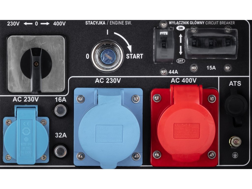 | Zásuvky: | 400V (16A), 230V (32A), 230V (16A) |