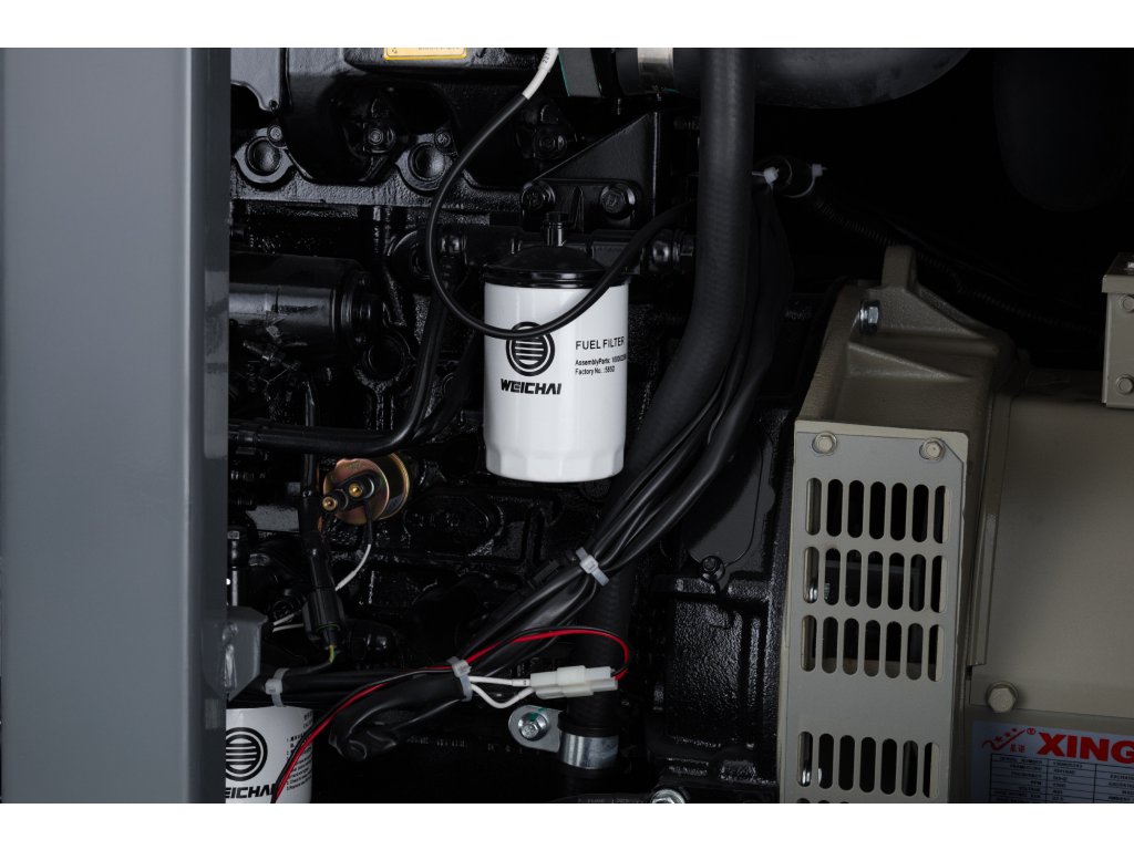 Generátor jsme vybavili motorem nejvyšší kvality. Motor může zaručit výkon působivých 21 kW. S takovou silou se na elektrocentrálu můžete spolehnout i ve velmi náročných provozech nebo jako na silný záložní zdroj.