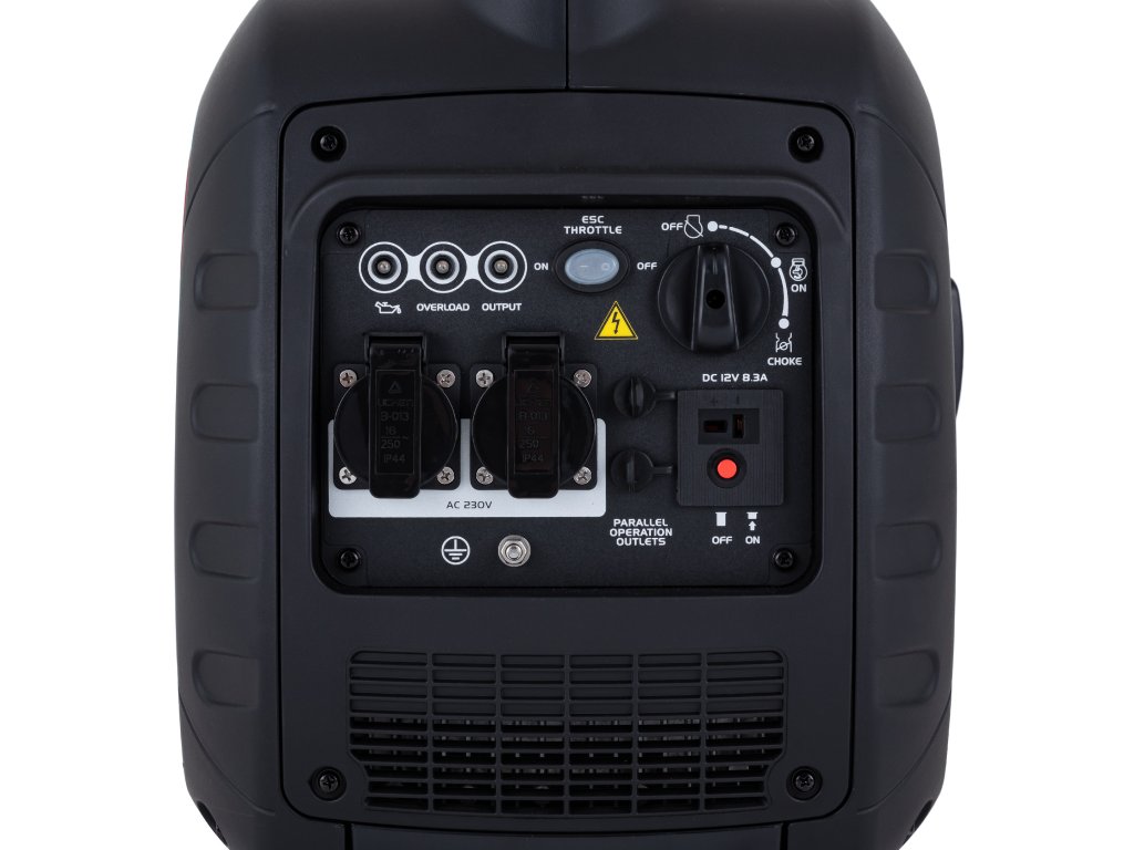 Aby byl generátor všestranný, vybavili jsme jej 2 zásuvkami na 230V (16A) a 1 zásuvkou na 12V (8,3A). Můžete tak pohánět nebo nabíjet více přístrojů najednou.
