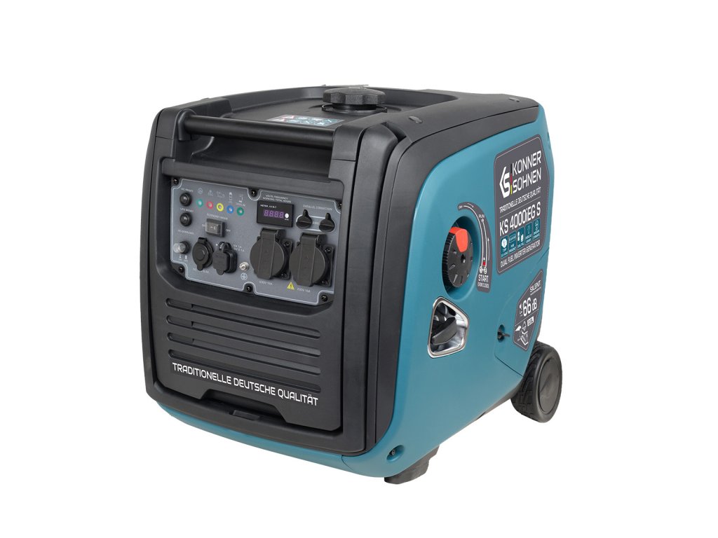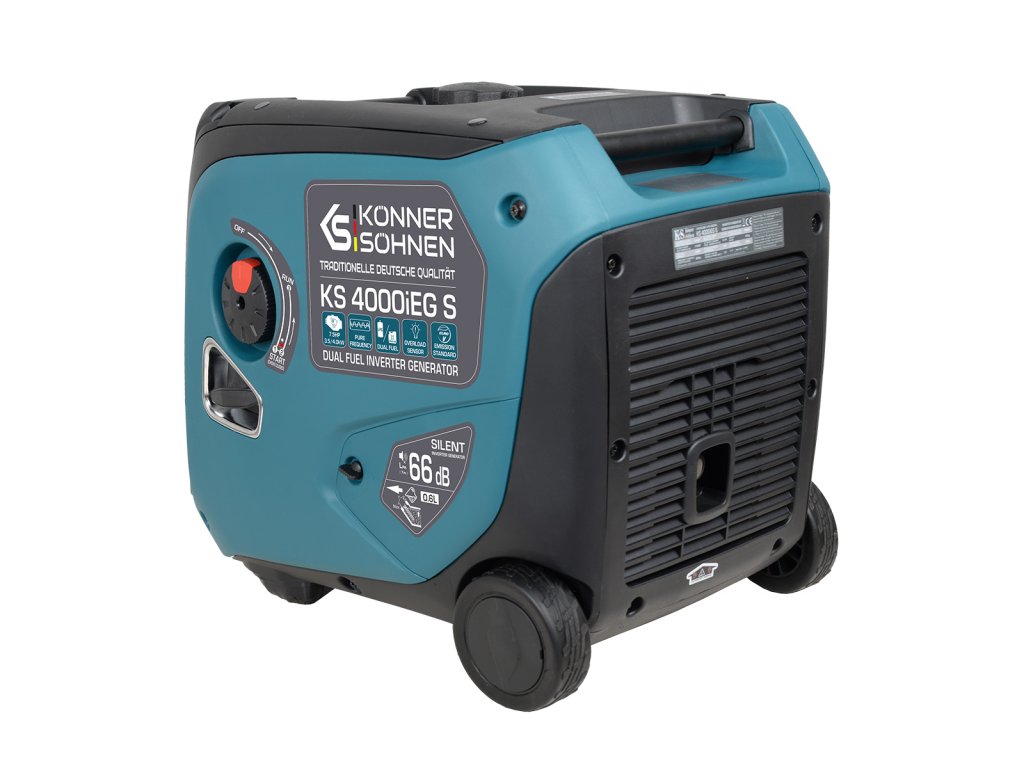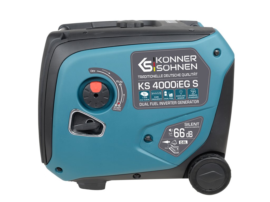 Invertorová elektrocentrála KS 4000iEG S vhodná pro připojení LPG (Propan-Butanové lahve) je spolehlivý zdroj energie pro provoz citlivé a vysoce přesné elektroniky díky čisté sinusové vlně a frekvenci 50 Hz. Všechny modely této invertorové řady jsou založeny na robustních motorech, které splňují všechny evropské standardy kvality včetně emisní normy EURO V. Elektrocentrála je vybavena univerzálním motorových spínačem 3v1, který umožnuje nejjednodušší a nejpohodlnější spuštění elektrocentrály.