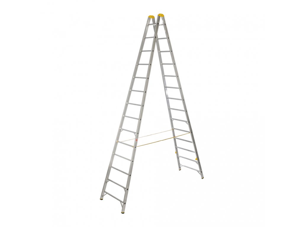 Hliníkové štafle FORTE, počet nášľapov 2 x 14, max. výška 3,90 m a šírka 813 mm.