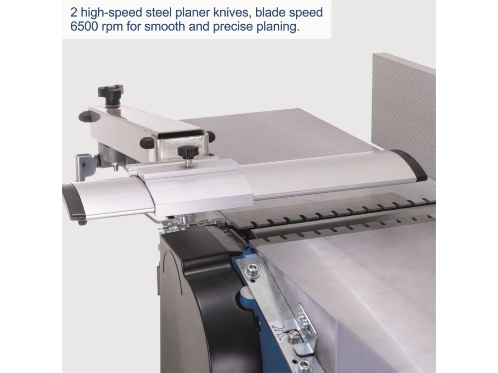 Scheppach HMS 1500 je kombinovaný stroj, určený pro náročné kutily nebo do dílen, vyžadujících profesionální výsledky. Stroj umožňuje jak klasické hoblování dřeva, tak disponuje i funkcí protahu. Přestavba z hoblovky na protahovačku je snadná a není k tomu potřeba žádné nářadí. Kompaktní design minimalizuje prostorové nároky v dílně. Přesun stroje usnadňuje standardně dodávaná základna s koly a velká výsuvná madla. Robustní konstrukce zvládá bez problémů práci s hranoly a prkny z měkkého i tvrdého dřeva o šířce až 260 mm. Silný bezúdržbový indukční motor 2200 W spolu se dvěma ocelovými noži rotujícími rychlostí 6500 ot./min. se starají o velmi čistý a přesný řez, což v praxi znamená ještě jemnější opracování plochy. Nože jdou velice snadno vyměnit a celé ovládání stroje je velmi jednoduché a komfortní. Nastavení výšky protahu (max. 160 mm) se děje snadno pomocí otočné kliky. Na přesnosti opracování se podílí i velký hoblovací stůl z odolné, tlakově lité hliníkové slitiny a přesná masivní hoblovací zarážka s možností nastavení od 90° do 135°. Stůl protahu je potom vyroben z otěruvzdorné šedé litiny. Posuvná tyč a nástavec na odsávání pilin je ve standardní výbavě, zrovna tak jako bezpečnostní pojistky i spínač chránící obsluhu před nechtěným spuštěním stroje. Kontaktní údaje výrobce / dovozce / zplnomocněného zástupce výrobce v EU: Scheppach GmbH Günzburger Str. 69, 89335 Ichenhausen, Germany email: service@scheppach.comDodatočné parametre