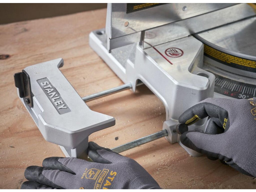 - Robustná základňa a dorazy zabezpečujú stabilitu a presnosť pri každom reze.