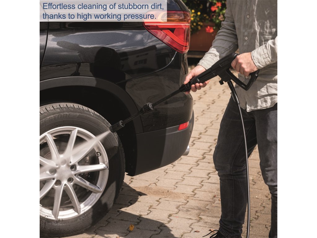 Tlaková myčka Scheppach HPC 1400 je lehká a kompaktní myčka, se kterou lehce zvládnete většinu běžných úklidových prací kolem domu nebo dílny. Umytí auta, kola, zahradního nábytku, květináčů nebo zahradního náčiní a techniky se stane hračkou. S váhou pouhých 5 kg se s myčkou snadno manipuluje, přičemž silný motor o výkonu 1400 W je schopný vyvinout maximální tlak až 110 barů. Pro snadnou obsluhu jsou připojovací prvky a hadice vybaveny rychlospojkami. Základní příslušenství, jako tlaková pistole a hadice se dají při skladování pohodlně umístit přímo v držácích na myčce. Myčka je vybavena čerpadlem se samonasávací funkcí. Myčku tak lze připojit nejenom ke kohoutku s tlakovou vodou, ale myčka si může sama nasávat vodu z kbelíku, sudu nebo z jiné nádrže. Nejste tak při mytí omezeni dostupností vody z běžného vodovodního řádu. Stroj je rovněž vybaven systémem Auto stop, kdy se při uvolnění spínače na tlakové pistoli rovněž vypíná motor. Výbava: 3 m tlaková hadice, tlaková pistole s tryskou a prodlužovacím nástavcem, vstupní filtr. Kontaktní údaje výrobce / dovozce / zplnomocněného zástupce výrobce v EU: Scheppach GmbH Günzburger Str. 69, 89335 Ichenhausen, Germany email: service@scheppach.comDodatočné parametre