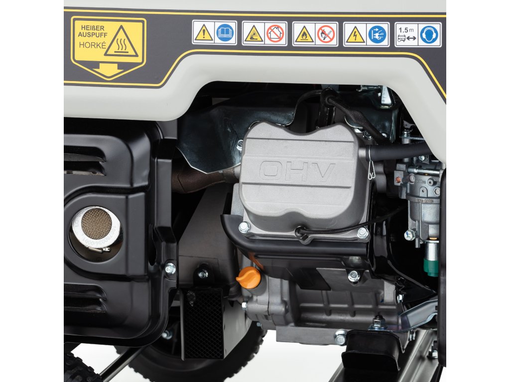 - Pevný a kompaktní rám chrání generátor před poškozením a usnadňuje jeho přepravu