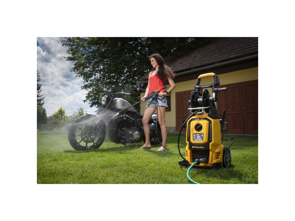 elektrická tlaková myčka 180 barů s dálkovým ovládáním a příslušenstvím Riwall PRO REPW 180 RC SET + autošampón (1 liter)
