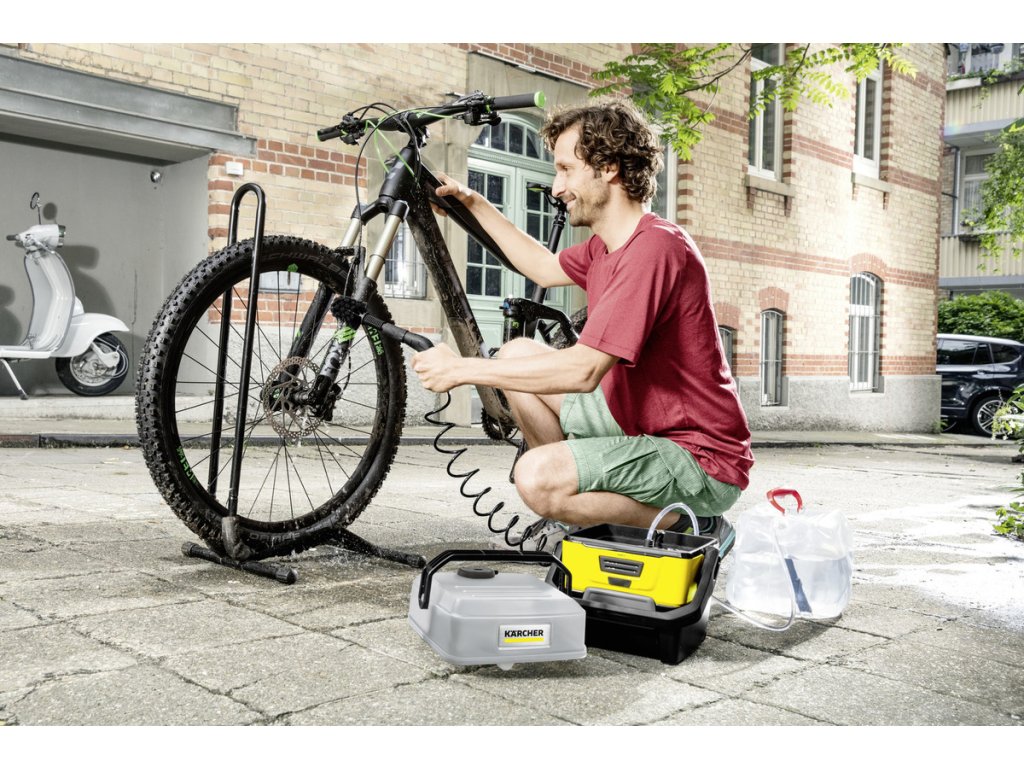 Čisté vybavenie, aj keď ste vonku: S mobilným tlakovým čističom od Kärcher vrátane turistickej skrinky s optimálne prispôsobeným príslušenstvom na čistenie turistického vybavenia. Jeho integrovaná lítium-iónová batéria a odnímateľná nádrž na vodu umožňujú jeho použitie aj bez napájania alebo pripojenia k vode. S jemným, ale efektívnym nízkotlakovým plochým lúčom je tlakový čistič ideálny pre citlivé povrchy. LED displej tiež signalizuje, či je batéria takmer vybitá alebo sa nabíja. Výhody turistickej skrinky: Univerzálnu kefu s mäkkými štetinami je možné pripevniť na striekaciu pištoľ a odstraňuje aj odolné nečistoty, sacia hadica umožňuje použitie alternatívnych zdrojov vody, ako sú studne alebo kanistre, a skrinku s príslušenstvom je možné ľahko pripevniť na zariadenie.