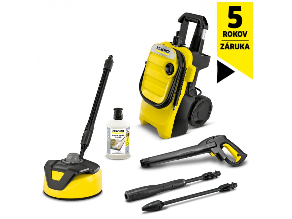 Či už v batožinovom priestore auta alebo hore na poličke; vďaka svojim kompaktným rozmerom sa vysokotlakový čistič K 4 Compact bez problémov zmestí kamkoľvek. Zariadenie je tiež neuveriteľne praktické pri používaní: flexibilný K 4 Compact sa dá používať horizontálne aj vertikálne, ľahko sa prepravuje, rýchlo odloží a poskytuje plný výkon vysokotlakového čističa. Výškovo nastaviteľná teleskopická rukoväť navyše zaisťuje pohodlnú výšku ťahania. Ďalšie podrobnosti o výbave: dve rukoväte na prenášanie, vysokotlaková pištoľ Quick Connect, 6 m vysokotlaková hadica, pracovný nástavec Vario Power (VPS), rotačnú trysku a vodný filter. Vysokotlakovú hadicu a kábel je možné prakticky uložiť na predný kryt. Model K 4 Compact s vodou chladeným motorom a plochou 30 m²/h sa ideálne hodí na príležitostné čistenie miernych nečistôt (malé autá, záhradné ploty, bicykle atď.). Home Kit obsahuje čistič povrchov T 5 na efektívne čistenie väčších plôch okolo domu bez striekajúcej vody, ako aj čistič kameňa a fasády (1,0 ml).