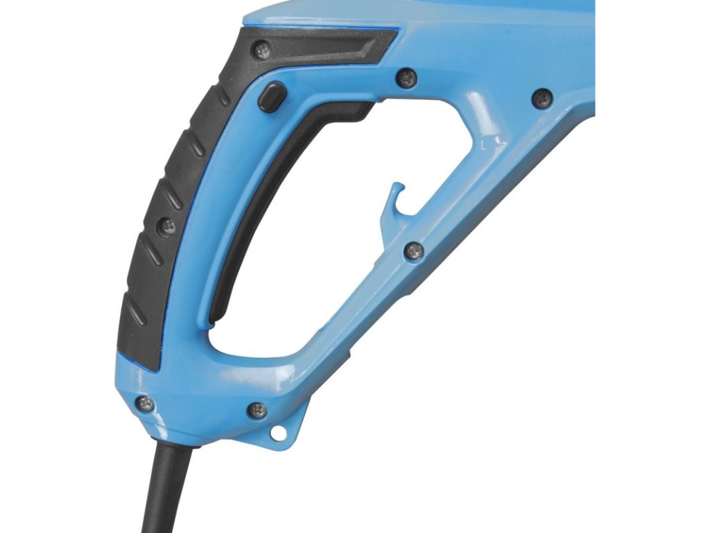Elektrický čistič špár na čistenie špár chodníkov a terasovej dlažby. Výmena kefy bez použitia náradia (rýchlo upínací systém, kovová kefa, nylonová kefa, ochrana proti striekajúcej vode, vodiace koleso. Mäkká rukoväť, bezpečnostný spínač, nastaviteľná prídavná rukoväť, odľahčenie ťahu kábla.