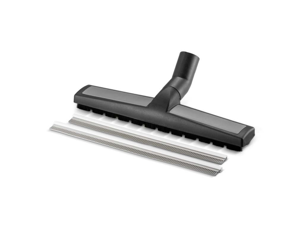Ideálna na odstraňovanie jemného prachu, hrubých nečistôt alebo kvapalín pomocou vysávačov na mokré a suché vysávanie od Kärcher: podlahová hubica v DN 35 a šírke 360 milimetrov je vyrobená z robustného plastu, má bočné valčeky, jednoducho vymeniteľnú kefu pásiky a stierky.Dodatočné parametre