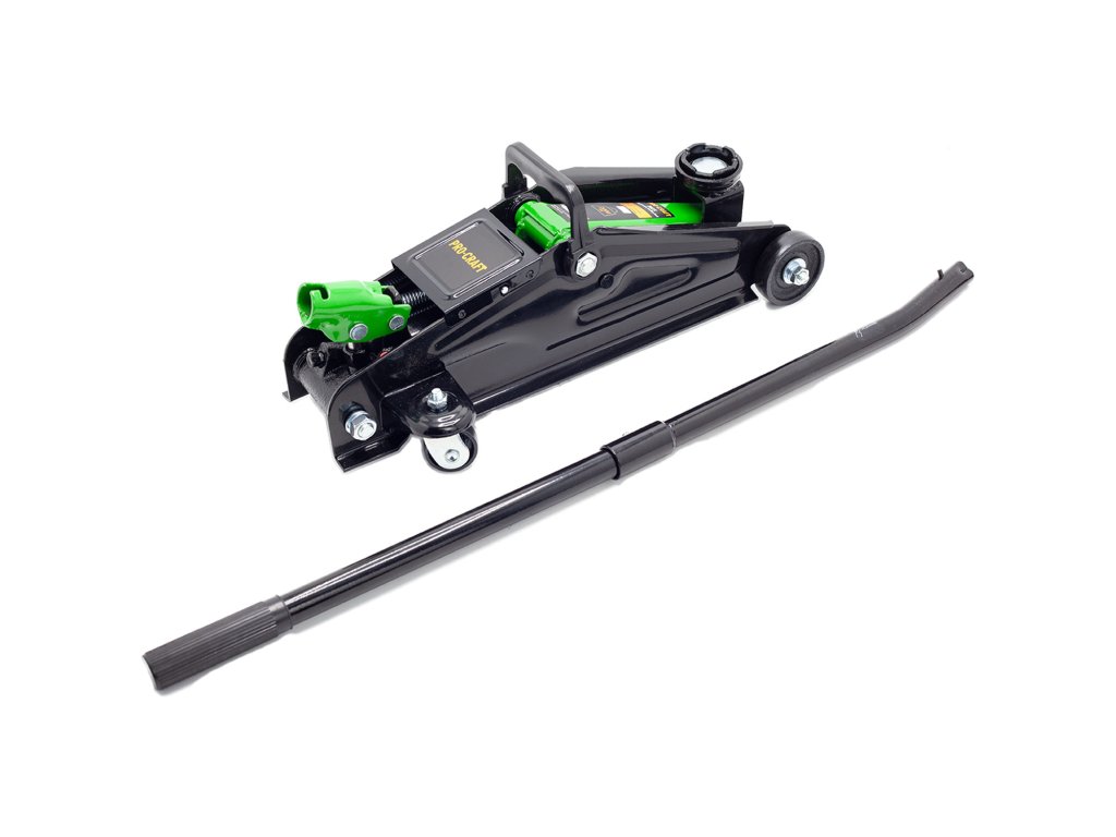 Pojízdný hydraulický zvedák - sada Procraft PJ25S je určen k zdvihání automobilů. Nízký profil umožňuje zvedání automobilů se sníženou světlou výškou podvozku. Zvedák má zdvihací kapacitu 2 tuny a zdvihový rozsah od 135 mm do 340 mm. Konstrukce z kvalitního ocelového pláště zvyšuje odolnost. Ergonomické madlo a čtyři robustní kolečka usnadňují manipulaci. Součástí dodávky je tyč, plastový kufr, dvě podpěry a dva klíny.