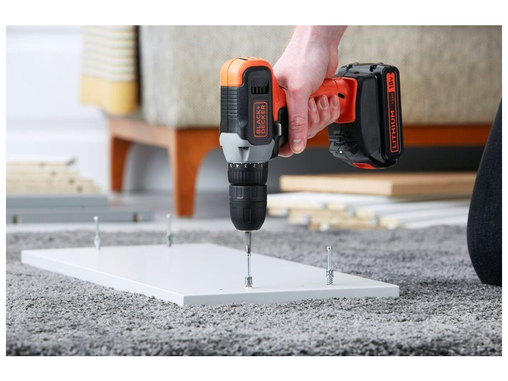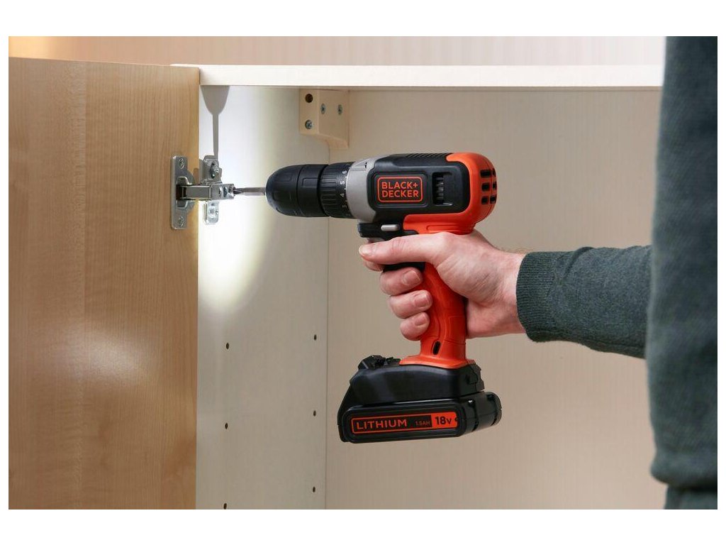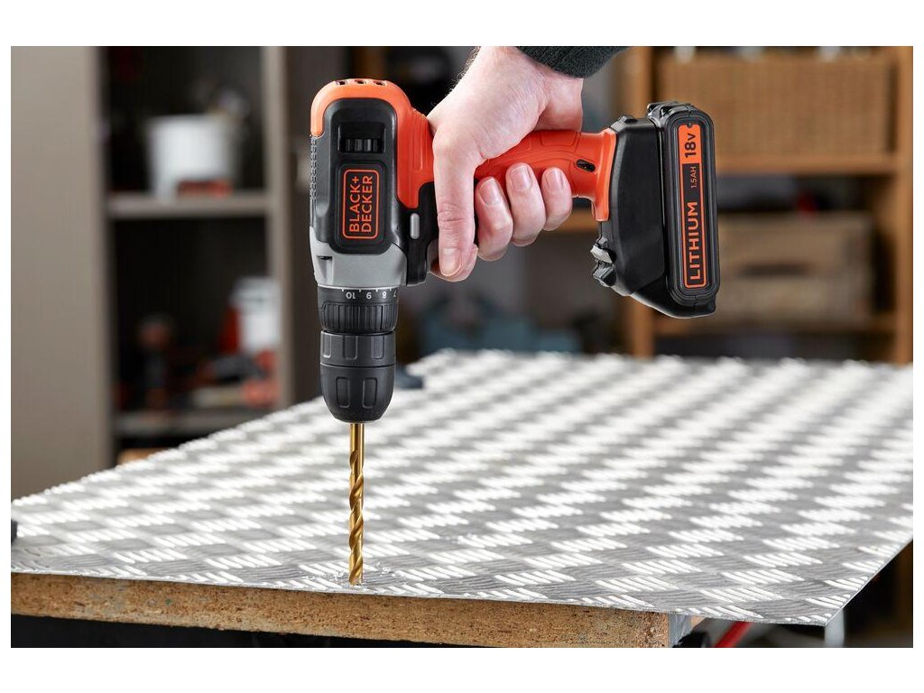 Vŕtačka jednorýchlostná AKU 18V 2x1,5Ah Li-Ion Black and Decker BCD001C2