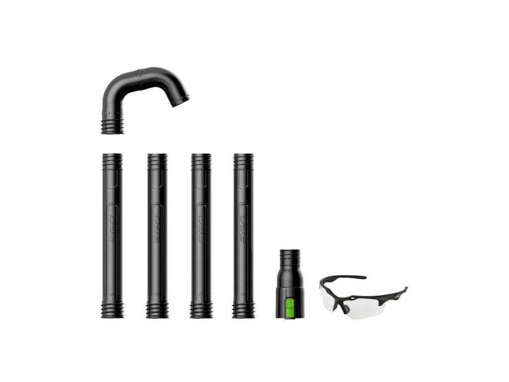 Originálne príslušenstvo EGO POWER+ sada AGC1001 je určená na čistenie odkvapov pomocou fukárov LB5300E a LB5800E. Umožňuje bezpečné a efektívne odstránenie lístia a nečistôt z odkvapov bez nutnosti použitia rebríka. Súčasťou balenia sú aj ochranné okuliare, ktoré zvyšujú komfort a bezpečnosť pri práci.