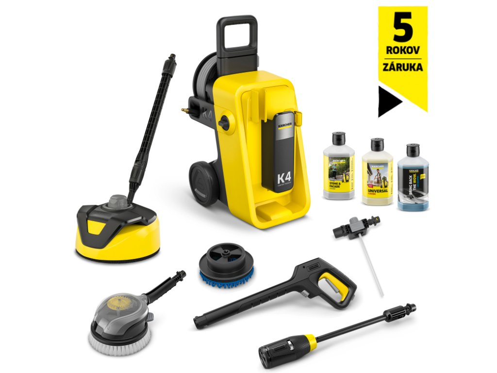 K 4 Comfort Premium Car & Home je výkonný a pohodlný vysokotlakový čistič, ideálny na odstraňovanie stredne silného znečistenia v dome a aute. Jeho dlhotrvajúci, vodou chladený motor zaisťuje konštantný výkon, zatiaľ čo pohodlný navijak hadice s hadicou PremiumFlex zaisťuje flexibilitu. Pištoľ G 180 Q COMFORT!Hold znižuje prítlačný tlak až o 50 percent pre prácu bez únavy. Vďaka systému Quick Connect je možné vysokotlakovú hadicu rýchlo pripojiť. Inovatívny pracovný nadstavec Multi Jet 4 v 1 kombinuje 4 rôzne prúdy, ktoré je možné nastaviť otáčaním hlavy nadstavca. Obsahuje súpravu Home Kit s čističom povrchov T 5, 1 liter čističa kameňa a fasád a súpravu na čistenie auta s rotačnou umývacou kefou s vymeniteľným nadstavcom a 1 litrom autošampónu. Koncept čistiaceho prostriedku 2 v 1 ponúka väčšie pohodlie a perfektné nanášanie čistiaceho prostriedku podľa danej úlohy. Príslušenstvo je možné úhľadne uložiť na zariadení a teleskopická rukoväť a kolieska s mäkkým povrchom uľahčujú prepravu. Podporu poskytuje aplikácia Kärcher Home & Garden s poradcom pre použitie, ako aj tipmi a trikmi. Obsah balenia obsahuje 1 liter čistiaceho prostriedku.
