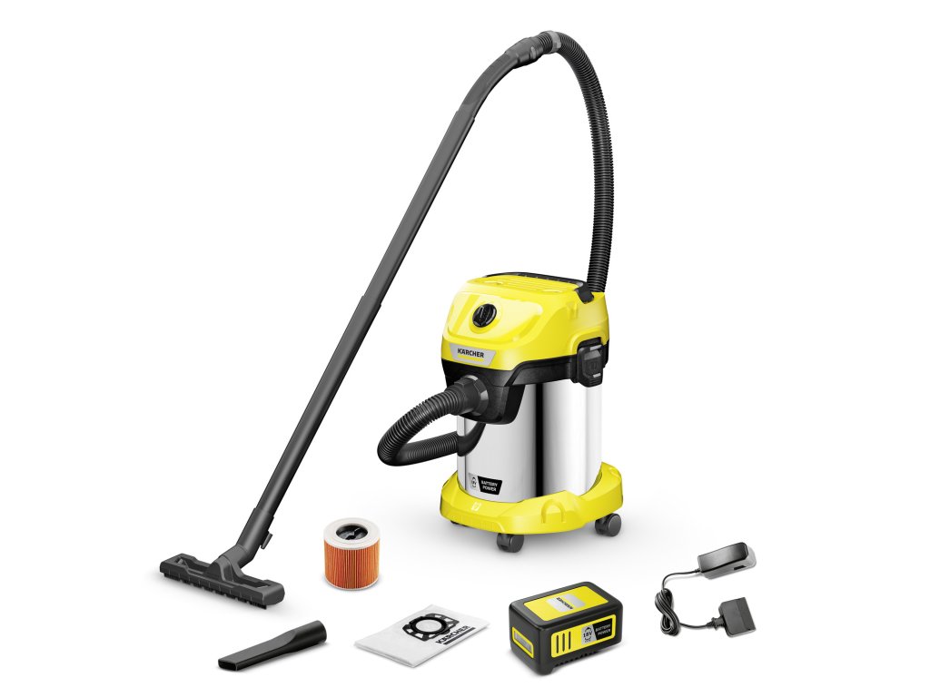 Viac voľnosti pohybu, väčšia flexibilita: Akumulátorový set mokrých a suchých vysávačov WD 3-18 S je napájaný z akumulátorovej platformy 18 V Kärcher Battery Power a je pripravená na okamžité použitie. Zariadenie dokonale kombinuje 2 metre dlhú saciu hadicu a podlahovú hubicu a dokáže okamžite odstrániť mokré, jemné alebo hrubé nečistoty. Zariadenie je tiež vybavené robustnou a nárazuvzdornou 17-litrovou nádobou z nehrdzavejúcej ocele, jednodielnym patrónovým filtrom, ako aj fleecovým filtračným vreckom. Uloženie sacej hadice šetrí miesto; Jednoducho ho bezpečne zaveste na hlavu zariadenia. Medzi ďalšie funkcie patrí praktická funkcia fúkania pre oblasti, kde nie je možné vysávanie, odkladacia polica na náradie a drobné predmety, otočný spínač na jednoduché zapínanie a vypínanie zariadenia, ergonomicky tvarovaná rukoväť na prenášanie, ako aj uzamykací systém "Pull & Push", ktorý umožňuje jednoduché otváranie a zatváranie nádoby. Parkovacia poloha na nárazníku umožňuje rýchle a pohodlné uloženie rúrok a podlahovej hubice aj pri krátkej prestávke v práci. Súčasťou balenia je akumulátor Kärcher Battery Power 18 V/5,0 Ah a nabíjačka.Dodatočné parametre