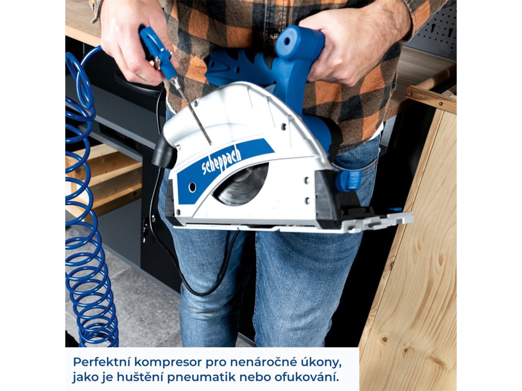 Kompresor Scheppach HC 26 je spolehlivý stroj, který se hodí na všechny běžné práce spojené s huštěním, ofukováním nebo na použití s běžnými pneumatickými nástroji. Kompresor pohání silný motor o výkonu 1500 W, který zajistí rychlé natlakování vzdušníku o objemu 24 l. Vzdušník slouží jako zásobárna stlačeného vzduchu a motor se tak automaticky zapíná jen v případě, že tlak vzduchu klesne pod požadovanou úroveň. Pumpa stroje je mazána olejem, což zajišťuje dlouhou životnost celého kompresoru i při častějším používání. Kontrola stavu oleje je velmi jednoduchá a provádí se zběžným pohledem pomocí optického ukazatele umístěném na stroji. 230 ml kompresorového oleje DAB46 je součástí balení. Kompresor je vybaven manometrem vzdušníku, tlakovým spínačem a odkalovacím ventilem. Výstup na vzduch je opatřen rychlospojkou. Přídavné madlo a kolečka umožní snadnou manipulaci se strojem, antivibrační podstavec zase zajistí klidný chod stroje. Kontaktní údaje výrobce / dovozce / zplnomocněného zástupce výrobce v EU: Scheppach GmbH Günzburger Str. 69, 89335 Ichenhausen, Germany email: service@scheppach.comDodatočné parametre