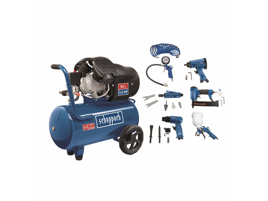 olajový dvojpiestny kompresor 10 bar so vzdušníkom 50 l a príslušenstvom Scheppach HC 55 DC SET + 9 mm nôž odlamovací, plastový