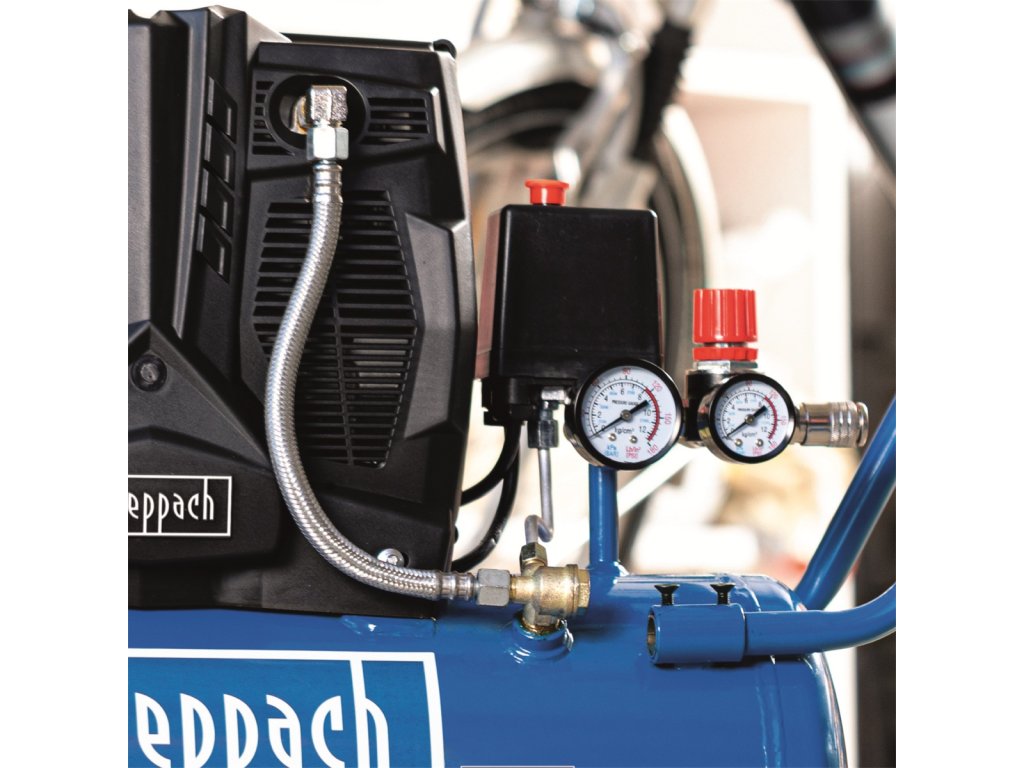 Kompresor Scheppach HC 25 Si je tichý bezolejový dvouválcový kompresor, který je vhodný i do míst a provozů s vysokými požadavky na nízkou míru hluku. Hlučnost 60 dB (A) znamená hladinu hluku zhruba na úrovni bublání varné konvice, takže v praxi budete vnímat hluk tohoto kompresoru pouze minimálně. Další výhodou je bezolejová technologie, která znamená, že do vzdušníku ani dále do spotřebiče vzduchu, neunikají žádné olejové páry. To se hodí v potravinářství, u speciálních lakýrnických prací nebo třeba při tlakování výčepních zařízení. Bezolejová technologie znamená rovněž mnohem nižší nároky na údržbu celého stroje. Scheppach rovněž odstranil běžnou nevýhodu tichých kompresorů, a to poměrně nízký sací výkon. Díky nové technologii je sací výkon 230 l/min téměř dvakrát vyšší, než je běžné a je plně srovnatelný s klasickými kompresory. Vzdušník o objemu 24 l slouží jako zásobárna stlačeného vzduchu a motor se tak automaticky zapíná jen v případě, že tlak vzduchu klesne pod požadovanou úroveň. Vzdušník rovněž výrazně rozšiřuje možnosti kompresoru a stroj se tak stává opravdu multifunkčním pomocníkem. Díky němu můžete s kompresorem, mimo běžného huštění a ofukování, provádět i náročnější operace s použitím různých druhů pneumatického nářadí. Kompresor je vybaven manometrem vzdušníku i manometrem pro kontrolu pracovního tlaku. Přídavné madlo a kolečka umožní snadnou manipulaci se strojem, antivibrační podstavec zase zajistí klidný chod stroje. Kontaktní údaje výrobce / dovozce / zplnomocněného zástupce výrobce v EU: Scheppach GmbH Günzburger Str. 69, 89335 Ichenhausen, Germany email: service@scheppach.comDodatočné parametre