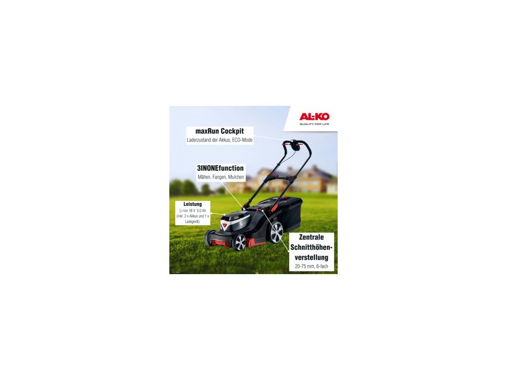 Ľahká s moderným dizajnom a funkciou mulčovania Komfortná s elegantným designom, akumulátorová kosačka na trávu 382 Li Premium zo série 18 V BOSCH KOMPATIBILNÉ PRE DOMÁCNOSŤ A ZÁHRADU. Špičkový model od AL-KO zaujme nízkou hmotnosťou a vysokou obratnosťou, ktorá zabraňuje rýchlej únave pri kosení trávnika. Vďaka inovatívnym komponentom, ako je líthium-iónová batéria s indikátorom stavu nabitia ale aj ovládacím panelom maxRun, je AL-KO 382 Li Premium spoľahlivým partnerom pre vašu záhradu. Navyše s funkciou mulčovania. Inovatívny panel maxRun s LED ukazovateľom úrovne nabitia akumulátorov a prevádzkovým režimem Eco Mode pre dlhšiu prevádzku. Kompatibilné s 18V programom BOSCH pre domácnosť a záhradu Vďaka nízkej hmotnosti, plastovému krytu a z toho vyplývajúcej vysokej manévrovateľnosti a šírke 38 cm je akumulátorová kosačka 382 Li Premium ideálna pre údržbu menších a stredne veľkých záhrad. 18V líthium-iónové batérie zaisťujú efektívnu prácu na trávnikoch o rozlohe až 400 m². Pomocou jednej rukoväte môžete pohodlne nastaviť výšku kosenia v 6 krokoch od 20 mm do 75 mm. Plastový zberný box s ukazovateľom stavu naplnenia má objem 45 l. Jednoduchú prepravu zaisťuje praktické madlo a dvojitý obojručný spínač na riadidlách zvyšuje komfort jazdy. Akumulátorová kosačka 382 Li Premium sa naviac vyznačuje možnosťou mulčovánia pokosenej trávy. Súčasťou balenia je mulčovací klin. S radou batérií AL-KO 18 V Bosch Home & Garden compatible ste vďaka nášmu širokému záhradnému programu dokonale vybavení pre každé použitie. Nabíjacie batérie a nabíjačky sú naviac kompatibilné so všetkými produktami z rady Bosch 18 V Home and Garden. 2 dobíjacie batérie (5,0 Ah) a nabíjačka sú súčasťou dodávky. S Li-ion batériou AL-KO 18 V BOSCH COMPATIBLE FOR HOME AND GARDEN máte možnosť ovplyvniť prevádzkovú dobu, nakoľko máte na výber 4 rôzne akumulátory ( 2,5 / 4 / 5 a 6 Ah ). Kúpte si akumulátorovú kosačku AL-KO 382 Li Premium Kúpte si teraz akumulátorovú kosačku 382 Li Premium v našom internetovom obchode alebo u niektorého z našich špecializovaných predajcov. Pokiaľ by ste chceli podobnú kosačku v menšom a ľahšom prevedení na menšiu plochu , doporučujeme 3.22 Li Easy s art.č. 113857.2 výkonné 18V (5,0 Ah) lítium-iónové batérie v baleníS ergonomickým obojručným spínačom pre najvyšší komfort obsluhyMaxRun kokpit s možnosťou Eco-režimuPrémiové ovládanie nastavenia výšky koseniaTeleskopická sklápateľná rukoväťStabilný plastovo-tkaninový zberný kôš s jazýčkom a ukazovateľom naplneniaMožnosť údržby a skladovania vo vertikálnej poloheVrátane funkcie mulčovaniaDodatočné parametre